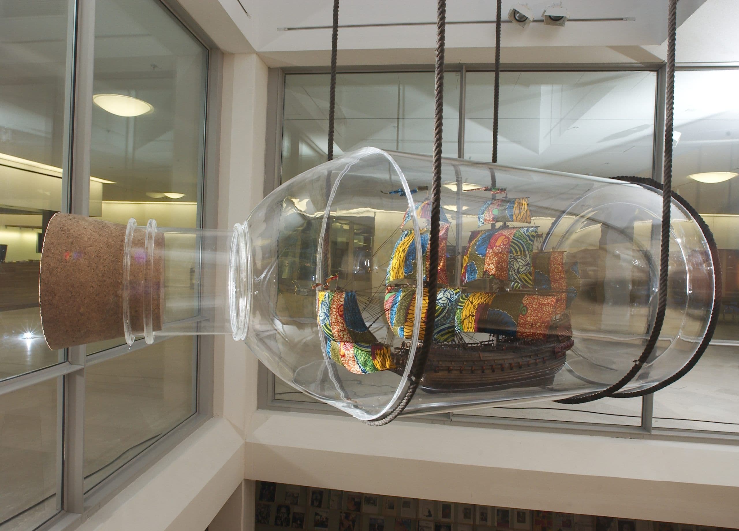 Moderna Museet exhibits Yinka Shonibare CBE's sculpture Vasa Ship (2004) in the museum's foyer. The Vasa is the oldest surviving ship from the 17th century, the century of trade lines, circumnavigation, colonialism and, above all, the slave trade. In his replica of the ship, Shonibare ties together historical and global threads across oceans and continents, reminding us of Sweden's role in the world and the world's role in shaping Sweden.