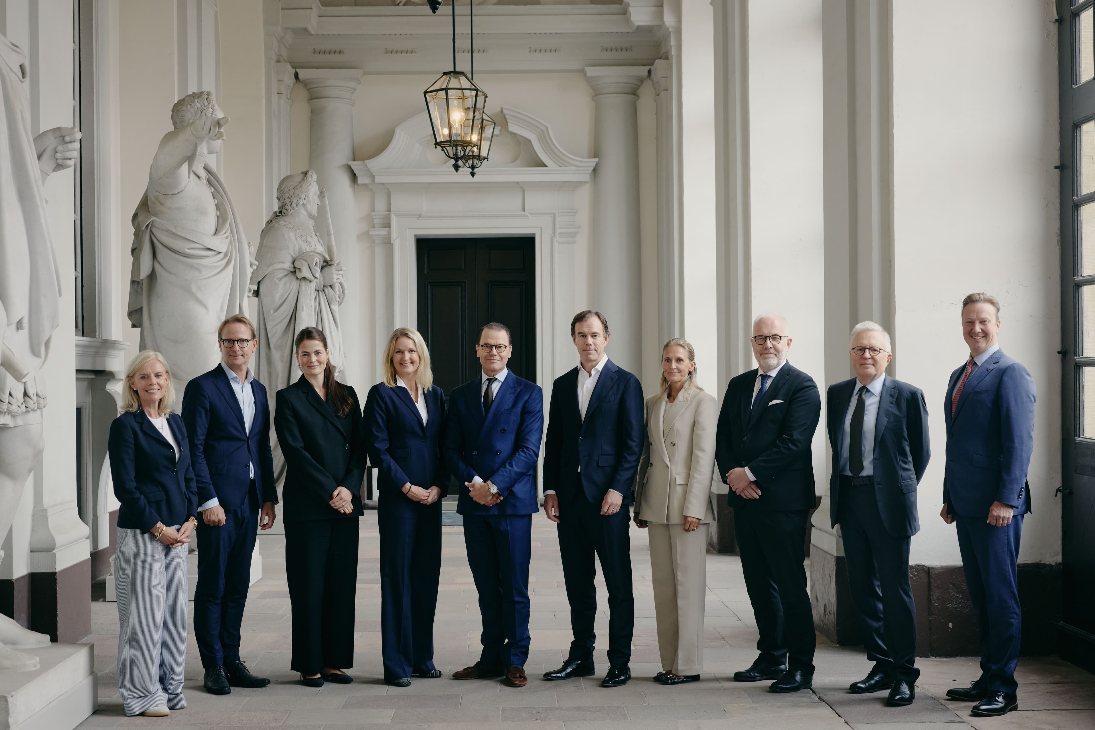 From left to right: Lena Josefsson, Lars Strannegård, Sara Ellfors Lang, Director Sara Sandström, H.R.H. Prince Daniel, Karl-Johan Persson, Elin Annwall, Governor Staffan Larsson, Chairman Johan Ericsson, and Janne Sirén.